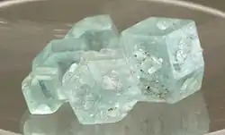 - альфа-борацит (1 — ромбічна низькотемпературна модифікація борациту; стійка при звичайній температурі вище 265 °C переходить у борацит. 2 — те саме, що борацит);