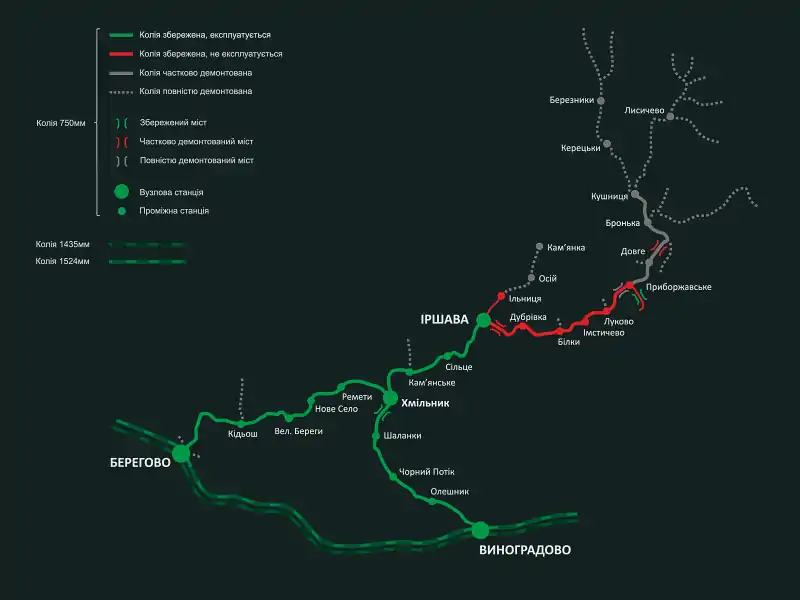 Відрізок Іршава — Ільниця демонтовано у 2010 році.