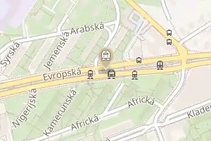 | Виходи до | Європейську (чеськ. Evropská), Горомержицьку, Ліберійську, Арабську і Камерунську |
