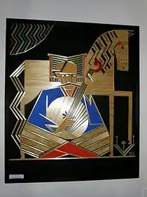 В експозиції Саєнкові твори «Козак Мамай», «Зустріч Семена Палія після Полтавської битви», «Невільники», «Тарас Шевченко» та інші, виконані у техніці інкрустації соломою. Крім творів самого митця в експозиції твори його учнів і послідовників: декоративне панно «Тече вода з-під явора», «Символи українського життя», «Древо життя» Ніни Саєнко, «Козак Мамай», «Вічність», «Писанковий мотив» Лесі Майданець-Саєнко.