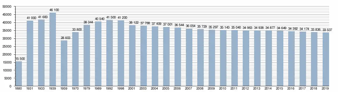 Кількість постійного населення міста, станом на 1 січня 2019 року, налічувала 33 537 осіб[7].