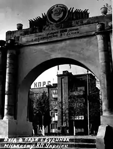 Вхід до парку з вул. Комуністична (тепер — Карпатська Брама). Фото з фотоальбому 1970 р.