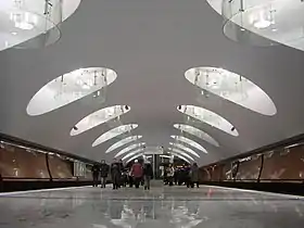 Особливістю її оформлення є декорування склепіння світловими нішами, виконаними у вигляді вертикальних циліндрів. У конструкції склепіння передбачені службові галереї, що з'єднують підземні вестибюлі станції.