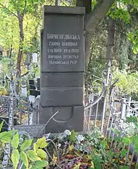 Похована в Києві на Байковому кладовищі (ділянка № 2). Могила охороняється Спілкою театральних діячів України.