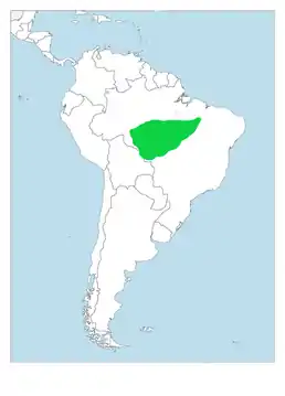 Вид поширений в Південній Америці. Трапляється в амазонський тропічних дощових лісах на південному заході Бразилії та на крайньому сході Болівії (національний парк Ноель Кемпф Меркадо).