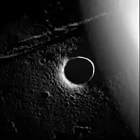 Кратер Мольтке Борозни Іпатії на сході Сонця. Світлина з борта Аполлон-11.