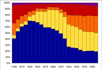 ![]() Розподіл чисельності населення Нью-Йорка за боро (знизу вгору): 1. Мангеттен,