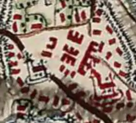 ![]() Борщівський замок на мапі Фрідріха фон Міґа, XVIII ст.
