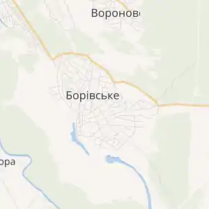- Боровское (Borivs'ke, Борівське): карта поселка городского типа, карта дорог, спутниковая карта, сьемки со спутника. Портал городов и сел Украины(рос.)