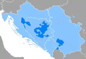 ![]() поширення боснійського варіанту в межах сербо-хорватської мови | |