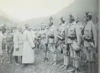 ![]() Цісар Карл І оглядає боснійців. Південний Тіроль, 1917 р. | |