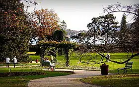 Сад розділений на кілька тематичних секцій — дендрарій, альпійську гірку, сад лікарських рослин, сад культурних рослин, оранжереї.