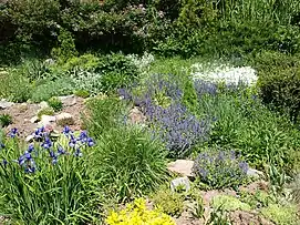 На альпійській гірці зростає 87 видів рослин, у тому числі: цибуля ведмежа, підсніжник білосніжний, барвінок малий, айстра альпійська, деревій звичайний, чорнобривець, незабудка альпійська, арабіс альпійський, авринія скельна, іберіс скелястий, лобелія пурпурова, гвоздика трав'яна, коронарія зозуляча, роговик дернистий, сонцецвіт звичайний, брандушка різнобарвна, очиток їдкий, очиток білий, ялівець козацький, ялівець китайський, купина багатоквіткова, гіацинт східний, проліска дволиста, змієголовник австрійський, материнка звичайна, чебрець звичайний, енотера дворічна, півонія тонколиста, армерія дерниста, сон-трава, горицвіт весняний, петунія гібридна, фіалка триколірна, перстач індійський, купальниця європейська, жовтець їдкий, анемона дібровна, вербозілля лучне, костриця лучна, цмин пісковий, льнянка альпійська, бадан товстолистий, ясколка махрова, ліатріс колосковий, ромашка без'язичкова.