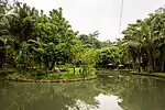 Сад оточений рисовими полями і включає ділянку лісу. Крім природних пам'яток, у саду є басейни для дорослих і дітей, кафе і ресторан, читальний зал і конференц-зал.