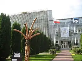 - Пальмова оранжерея, висота якої 22 метри, що дозволяє вирощувати пальми і інші високі рослини. Найстарішою в оранжереї є фінікова пальма канарська, якій 90 років. Крім того тут ростуть численні ліани і епіфіти. Є також акваріуми з тропічними рибами і черепахами