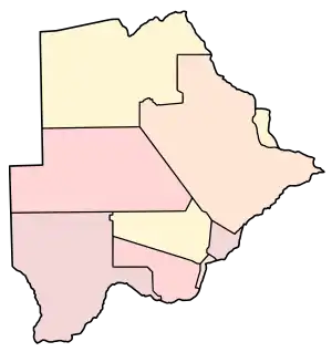 В адміністративно-територіальному відношенні територія Ботсвани поділяється на 9 округів[2]: