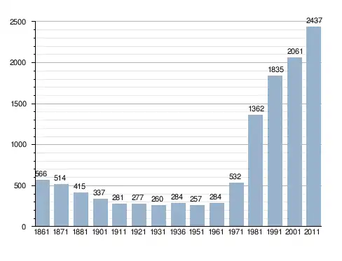 Станом на 31 грудня 2014 року в муніципалітеті офіційно проживало 115 іноземців з 26 країн, серед них 34 громадяни країн Євросоюзу та 7 громадян України.[4]