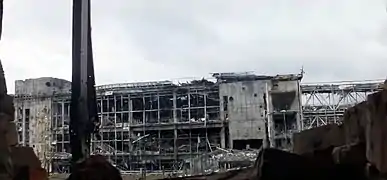 20 січня 2015 року проросійські сили підірвали новий термінал, бетонні перекриття і стеля у багатьох секціях обвалилася, ховаючи під собою українських захисників. 22 січня 2015 року вцілілі захисники вийшли з термінала, проте багато поранених і контужених українських бійців потрапила до полону. Оборона терміналів аеропорту тривала 242 дні.
