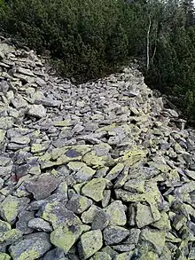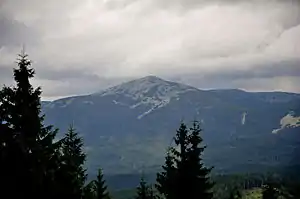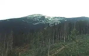 ![]() Гора Попадя, на південних схилах якої розташований заказник (видно вирубані ділянки в заповідній зоні) Гора Попадя, на південних схилах якої розташований заказник (видно вирубані ділянки в заповідній зоні) | |