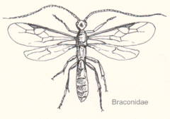 Браконі́ди (Braconidae) — численна родина дрібних перетинчастокрилих комах. Дорослі особини живляться переважно нектаром квіток, личинки — паразитоїди комах: жуків, лускокрилих, двокрилих, перетинчастокрилих та клопів. Браконіди мають важливе значення в зменшенні чисельності шкідників сільськогосподарських культур та лісу. Окремі види браконід (Habrobracon hebetor (Say) та інші) використовуються в біологічній боротьбі з комахами-шкідниками.