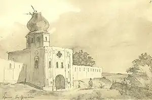 Брама в Густині. Церква св. Миколи — малюнок Шевченка з альбому 1845 року (аркуш 3), виконаний у 1845 році. Зліва внизу чорнилом напис рукою Шевченка: брама в Густыни.