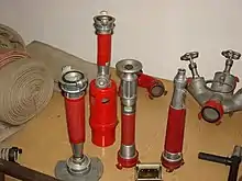 - Брандспойт (пожежний ствол) — металевий, конічної форми наконечник гнучкого пожежного рукава, призначений для створення щільного водяного струменя і спрямування його в потрібному напрямі.