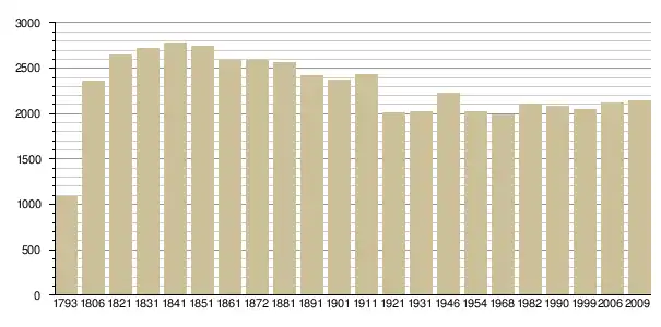 Динаміка населення (base Cassini de l'EHESS pour les nombres retenus jusque 1962[3], base Insee à partir de 1968 (population sans doubles comptes puis population municipale à partir de 2006)[4] · [5] ):