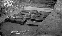 Могила польських офіцерів, убитих НКВС у Катині в 1940 році, під час ексгумації (1943)