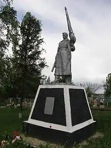 Напис на меморіальній дошці: «Вечная слава и память воинам, погибшим за освобождение нашей родины в Великой Отечественной Войне 1941—1945 гг.».