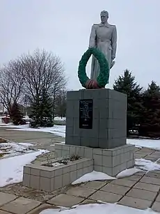 Пам'ятка знаходиться в центрі села, поблизу магазину. У братській могилі поховано шість воїнів 28-ї кавалерійської дивізії шостої Армії Південно-Західного фронту, які загинули при визволенні села на початку жовтня 1941 року, і 35-ї гвардійської стрілецької дивізії, які загинули при визволенні села 17 вересня 1943 року. 1967 року було проведено перепоховання з місця боїв у дану братську могилу і тоді ж біля могили було встановлено скульптуру «Воїн з вінком».