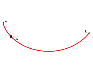 Очевидно, закон збереження енергії накладає обмеження на висоту точки В: точка В має знаходитись нижче, або на тій самій висоті що і точка А. Якщо точка В лежить на одній вертикальній прямій з точкою А, то розв'язок задачі очевидний — траєкторія найшвидшого спуску буде відрізок прямої [АВ]. Тому ми будемо розглядати випадок, коли точка В дещо зміщена від точки А по горизонталі.