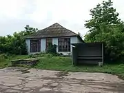 Автобусна зупинка та будівля магазину