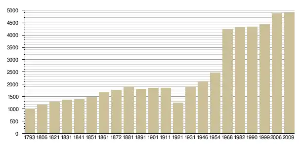 Динаміка населення (base Cassini de l'EHESS pour les nombres retenus jusque 1962[3], base Insee à partir de 1968 (population sans doubles comptes puis population municipale à partir de 2006)[4] · [5] ):