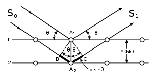 де θ — кут ковзання, λ — довжина хвилі, n — ціле число, яке називається порядком дифракції. Ця ж формула справедлива для розсіювання хвиль на кристалі кубічної сингонії.
