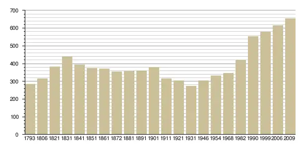 Динаміка населення (base Cassini de l'EHESS pour les nombres retenus jusque 1962[3], base Insee à partir de 1968 (population sans doubles comptes puis population municipale à partir de 2006)[4] · [5] ):
