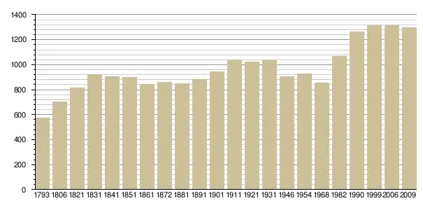 Динаміка населення (base Cassini de l'EHESS pour les nombres retenus jusque 1962[3], base Insee à partir de 1968 (population sans doubles comptes puis population municipale à partir de 2006)[4] · [5] ):