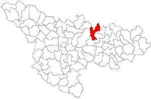 Комуна розташована на відстані[3] 381 км на північний захід від Бухареста, 37 км на схід від Тімішоари.