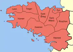 - Осисмії — займали терени сучасного департаменту Фіністер, західну частину департаментів Кот-д'Армор і Морбіан;