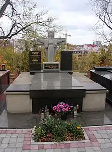 Похований у родинній усипальниці на полі № 72 Личаківського цвинтаря.
