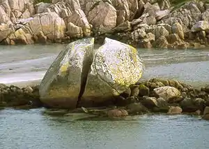 - Необкатані безформні (від 10 см і більш) або обкатані великі (понад 1 м в діаметрі) уламки, шматки каменю, землі, глини, льоду тощо.