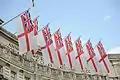 Арку Адміралтейства зазвичай прикрашають білими прапорами у державних випадках.