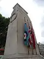 Кенотаф із зображенням Королівських ВПС і Цивільного прапора, що стоять збоку Юніон Джека.