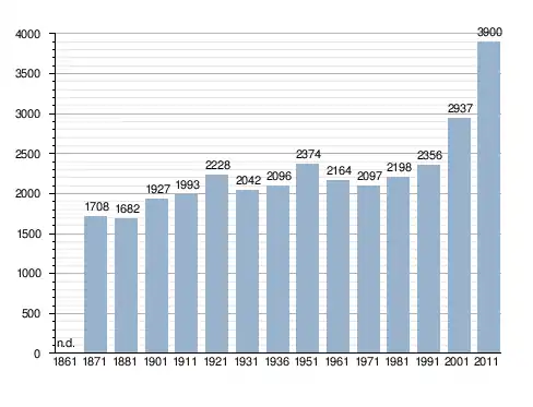 Станом на 31 грудня 2014 року в муніципалітеті офіційно проживали 193 іноземці з 21 країни, серед них 20 громадян країн Євросоюзу та 5 громадян України.[4]