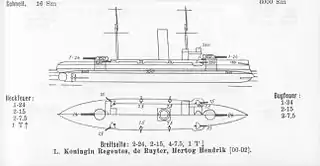 ![]() Схема броненосців берегової оборони типу «Кьонінгін Регентес» | |