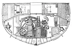 Вживалися заходи для підвищення захищеності артилерії і поліпшенню умов ведення вогню. Гармати все частіше розміщувалися за броньовими щитами, в броньованих баштах і казематах, по бортах влаштовувалися гарматні спонсони[8]. Перехід до більш потужних і ефективних вертикальних парових машин зробив броньову палубу зі скосами стандартною характеристикою всіх бронепалубних крейсерів. Поки на озброєнні були снаряди, начинені лише димним порохом, такий рівень захисту вважався достатнім за критерієм вартість/ефективність, так що до кінця XIX століття бронепалубні крейсери становили більшу частину крейсерських сил морських держав.