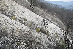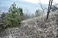 Ділянка розташована на схилі південної експозиції крутизною 15°. Ґрунти світло-сірі опідзолені деградовані, змиті з виходом кам'яних утворень на поверхню та сильно розгалуженою яружно-балковою системою. Використовується як пасовище.