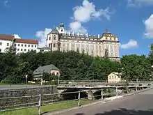 - Монастир, перебудований у стилі бароко у 1726-1748 рр. за задумом Кіліана Ігнаца Дінценгофера з монастирським костелом Святого Войцеха та монастирська бібліотека
