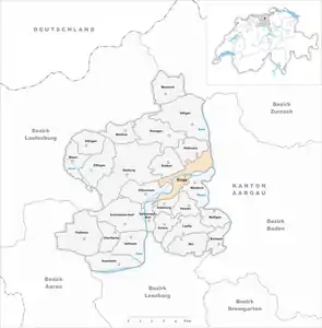 Площа муніципалітету становить 636 га, з яких 174 га вкриті лісом і 334 га забудовані[6]. Найвища точка — Брюггерберг — 516 м, найнижча — в гирлі річки Ліммат — 328 м[4].