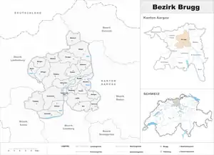 Ауенштайн, Birrd, Birrhardd, Bözbergd, Бьоцен, Бругг, Effingend, Elfingend, Габсбург, Гаузен (Швейцарія), Lupfigd, Mandachd, Mönthald, Mülligend, Oberflachsd, Remigend, Рінікенd, Rüfenachd, Scherzd, Schinznach-Badd, Schinznach-Dorfd, Thalheimd, Veltheimd, Villigend, Villnachernd, Віндіш