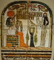 Стела Такенемет, що вітає бога Осириса, ґрунт на деревині з кольоровим малюнком, 15 династія, до 653 до н. е., Фіви (?)